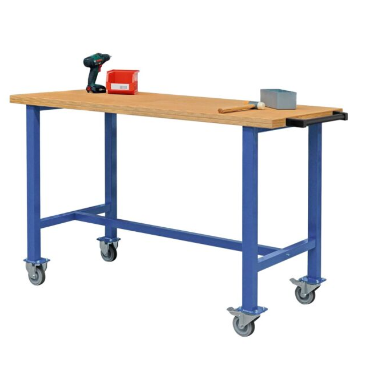 Peut être agencé de façon à garantir des conditions de travail optimales. • Charge : 600 kg. • Plateau : Multiplex, étanche aux projections d'eau et insensible à l'huile et à la graisse. • Dim. du plateau : L 1500 x P 700 x Ep. 40 mm. • Pieds : tubes carrés 50 x 50 mm. • Roues fixes : caoutchouc plein, Ø 100 mm. • Dim. totale : L 1500 x P 700 x H 980 mm. • Poids : 57 kg. Coloris : • Structure : Bleu pigeon NCS S 4040-R70 B.